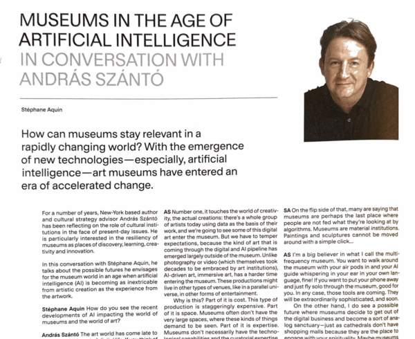 Article Publications “Museums in the Age of Artificial Intelligence”: András Szántó in Conversation with Stéphane Aquin, The Montreal Museum of Fine Arts Magazine